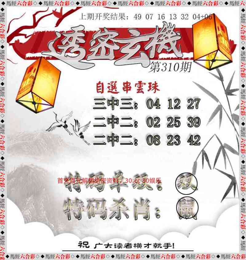 | 309期:绝杀三尾🥄【3.4.9】🍴开:鼠06准 |